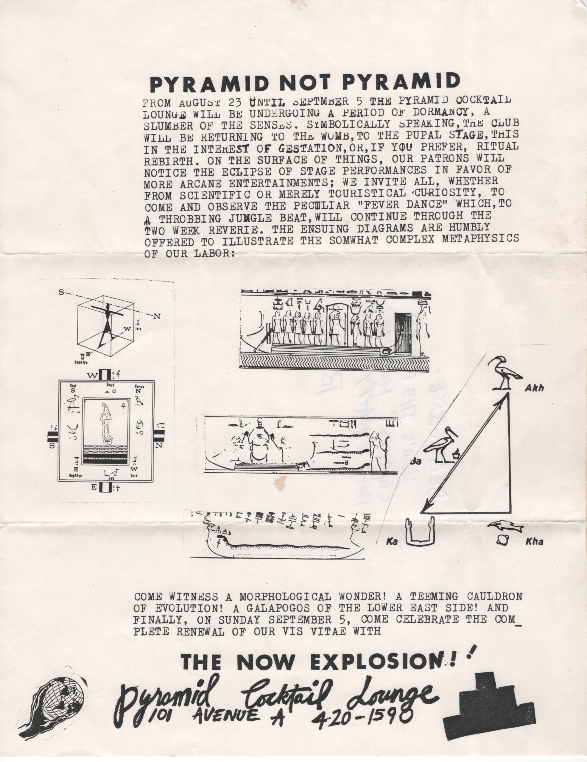 This small sampling of flyers provides some insight of the diverse and creative energies that occurred between the walls of the Pyramid Club– itself a fun-house mirror of the Lower East Side during the 1980’s.
